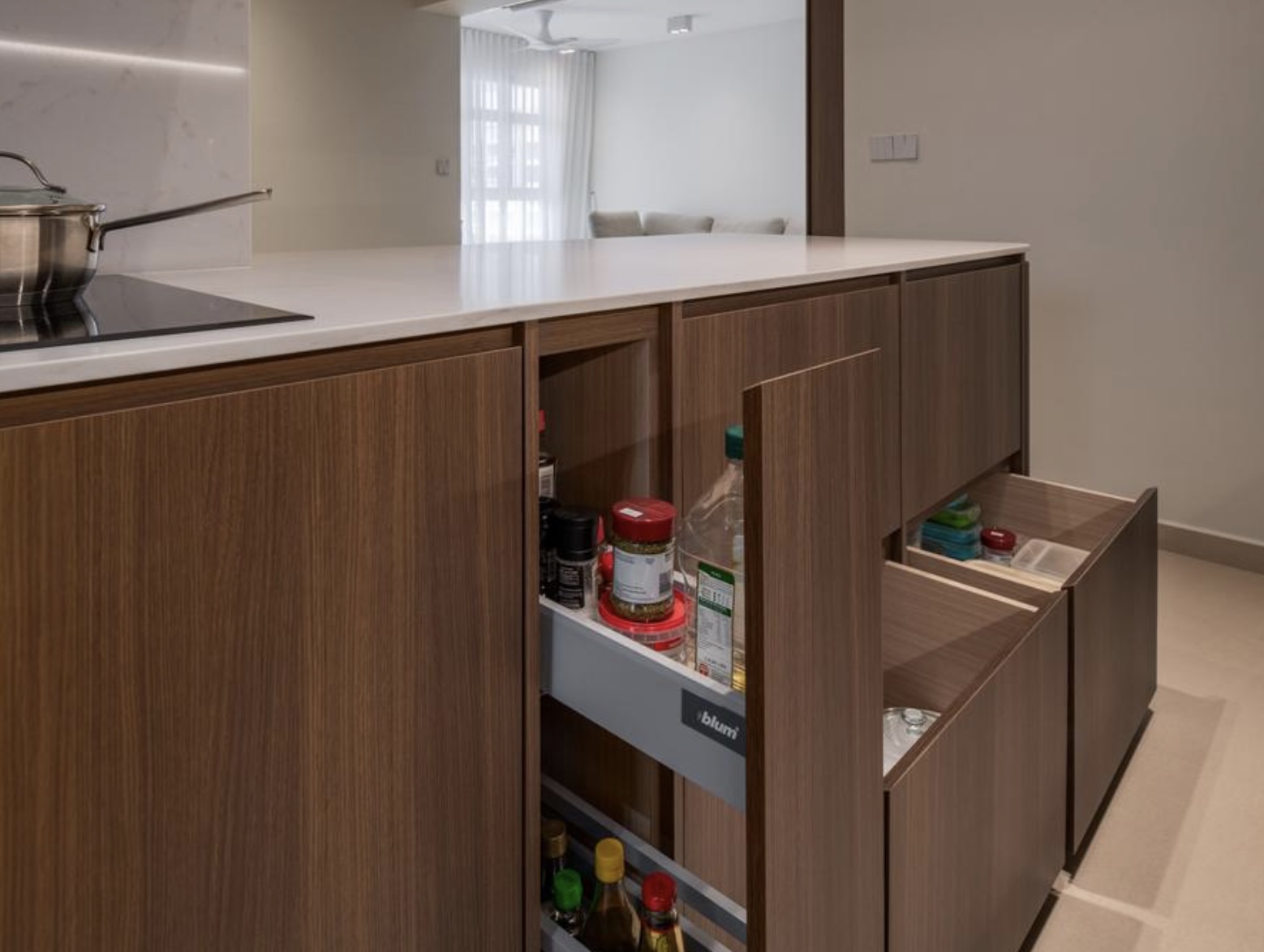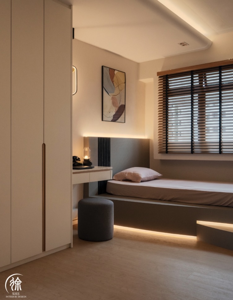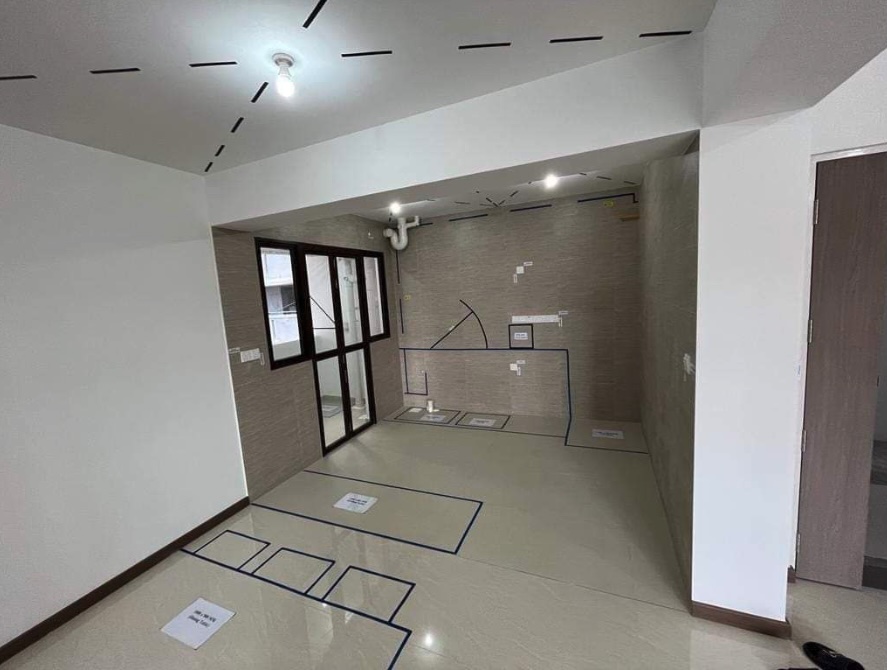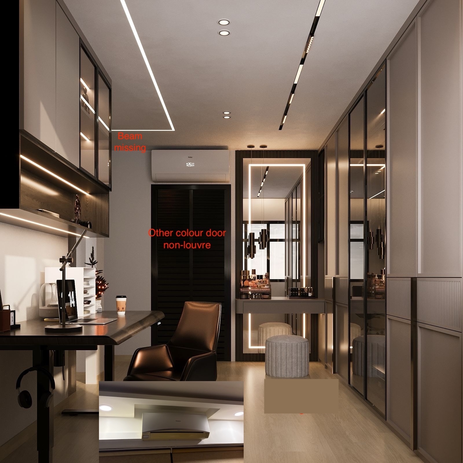 To include wall hanging corner fan at after beam blowing at dining table. False ceiling to cater cutout?